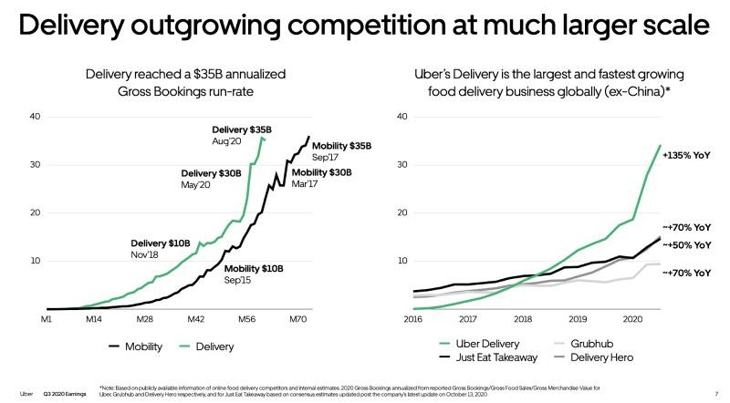 Uber Eats business growth compared with Uber rides (Uber Q3 2020 Earnings)