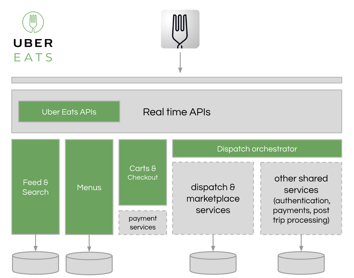 A simplified view into early Uber Eats architecture and how it leveraged systems built for original Uber