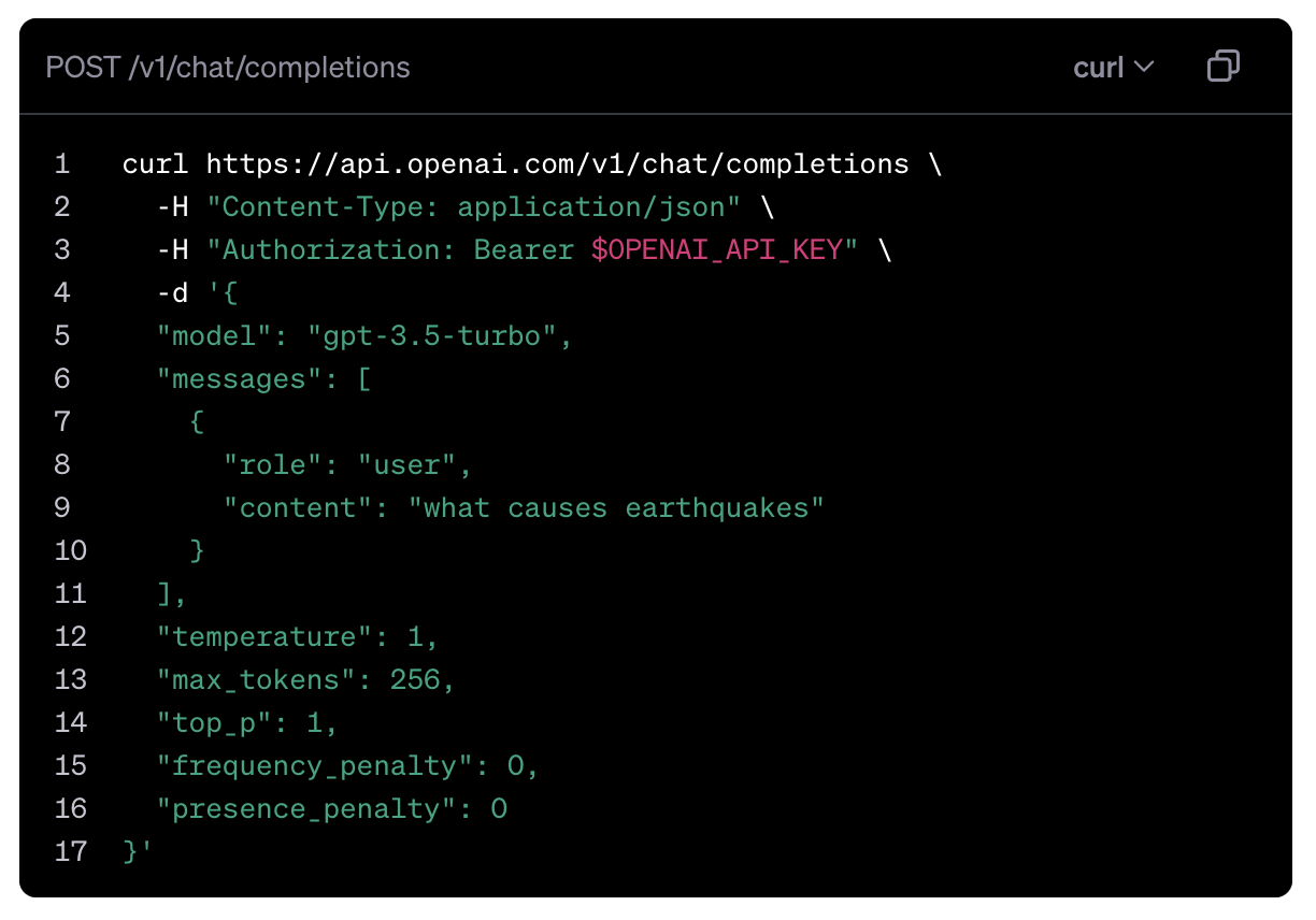 Test any queries or view code samples on OpenAI’s playground