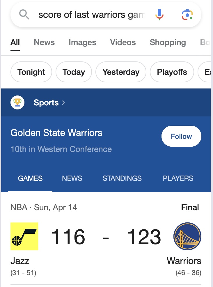 AI search apps don't do well with queries related to up to date sports scores unless manual query understanding is done